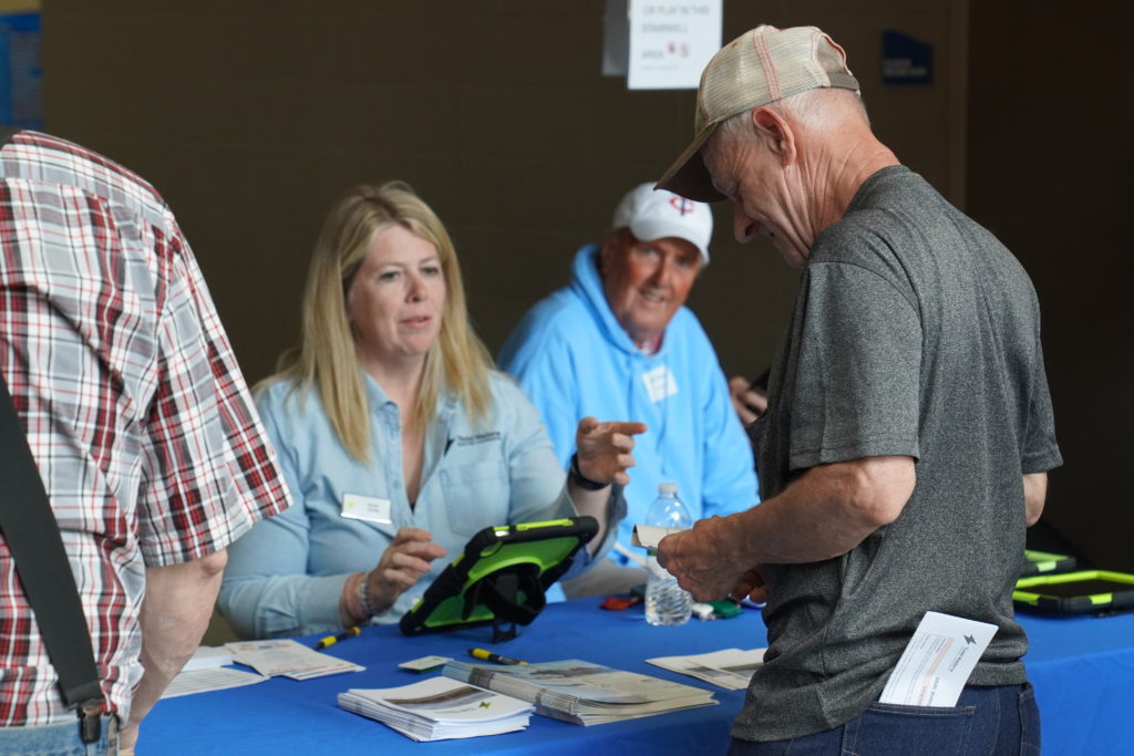 Prior to the business meeting, approximately 70 members participated in the interactive Transmission Trail, where they learned about Operation Round Up®, Great River Energy, electrical safety, capital credits, and more. Participants were entered into a drawing for six $25 energy credits. Winners included Mark Holper, Dianne Noska, Gary Donner, Steve and Becky Pierson, Tom Rausch, and Kelvin Maninga. Attendees also enjoyed bingo, with Dairy Queen gift cards and co-op swag awarded as prizes.