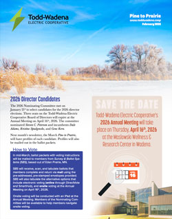 You can reduce carbon footprint by signing up to to receive the monthly Pine to Prairie newsletter electronically instead of by mail. Read about the co-op, community news, energy efficiency tips, rebates, and more. It’s convenient and free!